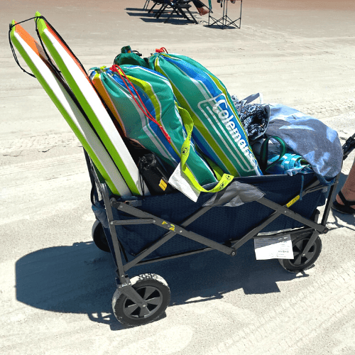 Unless you have several extra hands to help you carry everything, a wagon will help you bring all of your items in one trip while saving your arms.