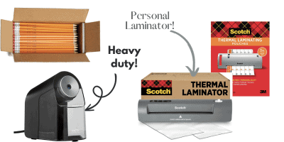 A personal laminator is perfect for protecting special papers and group activities. You can also use dry erase markers on them! I was shocked at how affordable these machines are and wish I would have purchased one earlier in my career! Don’t forget extra laminating pouches!