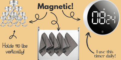 These heavy-duty magnetic hooks can hold flip charts, hall passes, clip boards, etc. They are so handy to have around.